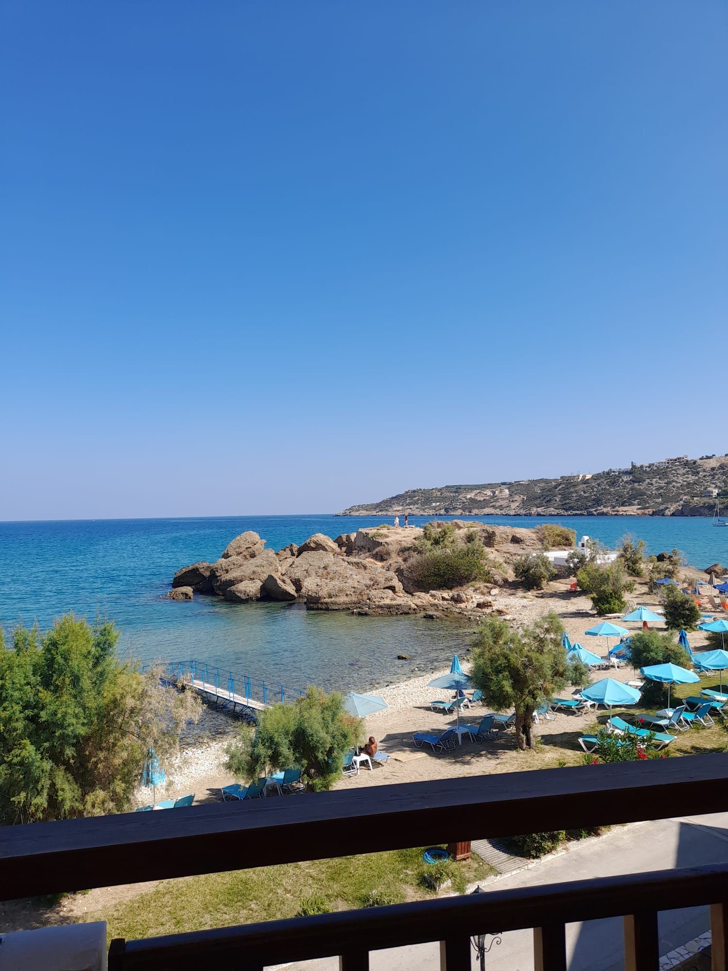 Huoneissa on ilmastointi, pieni keittiönurkkaus astioineen, jääkaappi, oma kylpyhuone sekä terassi/parveke, josta näköalat suoraan merelle. Lisäksi maksullinen tallerokero 15eur/vk.